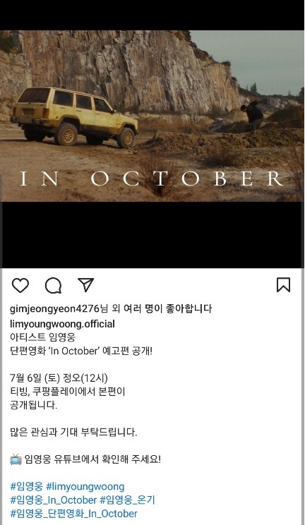 "대세" 트로트 가수 임영웅의 단편영화 인 악토버(In October)를 OTT 서비스(쿠팡, 티빙)를 통해 볼수 있다는 소식입니다. 이 단편영화는 7월 24일 현재 약 800만뷰에 이르는 임영웅의 신곡 "온기"의 뮤직비디오 풀버전입니다. 아래에서 보는 방법과 줄거리, 정보들을 소개해드리겠습니다.